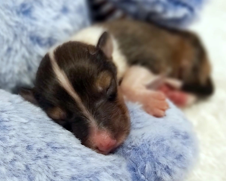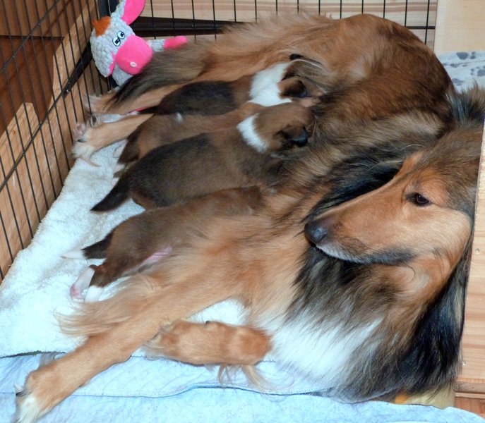 Am 11. Februar schenkte Bea 4 Welpen das Leben. Es sind ein Rüde und 3 Hündinnen in dunkel zobelweiß. Sie hat die Geburt selbstständig und problemlos gemeistert und versorgt ihre Welpen vorbildlich.